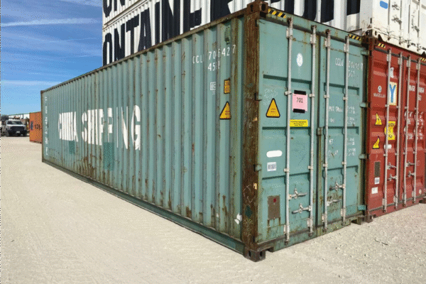 The 40′ HC Wind and Watertight Storage Containers are generally shipped from the shipping yard directly to the customer to save the customer on transportation cost. Wind & Watertight Units have made many trips across the ocean and will show signs of previous use including rust, dents, dings, floor scratches or scrapes, patches, and possibly an odor. Due to being pulled straight out of the shipping yard, color will vary on Wind & Watertight Units depending on the original factory paint color.